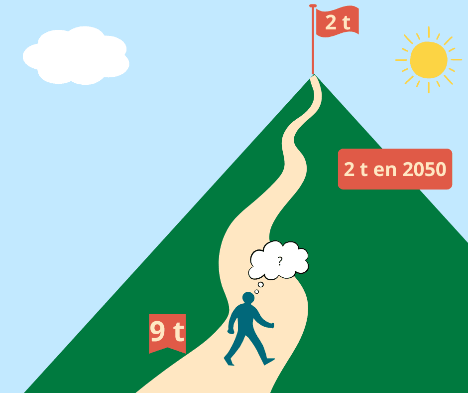 Beaucoup trouvent l’objectif de 2 tonnes par personne irréaliste. Et pour cause : nous partons tous avec une empreinte de services publics de 1,5 tonne par personne. Cela représente déjà les trois quarts de l’objectif affiché pour 2050 ! Quand on sait qu’aujourd’hui l’empreinte moyenne d’un Français est de 9 tonnes, le défi peut sembler insurmontable.
